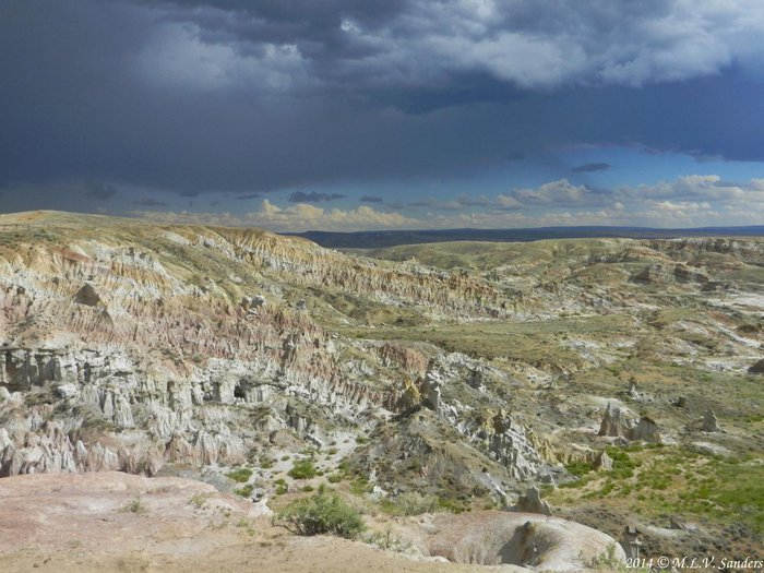A storm was coming. In the old days people said sulphurous smoke issued from the rocks here. Geologist think the smoke was from coal burning under the surface of the ground. That smoke and the dark skies we saw would have given this place an eerie feeling.