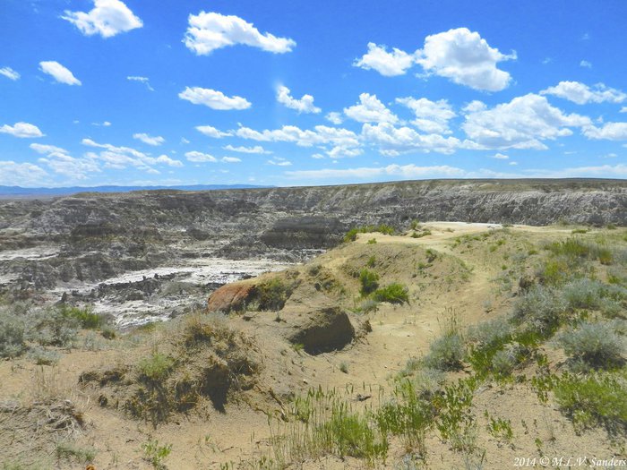 On Hwy. 20/26 40 miles west of Casper is a fantastic spot called Hell's Half Acre. One can only view it through a fence as the entire 330 acres belonging to Natrona County has been fenced off. It is frustrating to not be able to go down and wander among the weird formations. Most of the information on the internet about this place is out of date. The restaurant and motel were torn down in 2005 and the picnic area is closed. About all one can do is gaze though the fence at the amazing sights below. Binoculars would help here and the place is certainly worth a look.